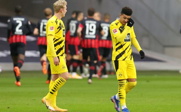 Der BVB berappelte sich schnell und erarbeitete sich leichte Feldvorteile. Gefährlich wurde es vor allem durch Einzelaktionen, Jadon Sancho verpasste den Ausgleich gleich zweimal (20., 26.) nur um Zentimeter. Doch auch die Eintracht blieb mit ihrem schnellen Umschaltspiel stets gefährlich, Aymen Barkok (34.) verpasste aus sechs Metern freistehend eine höhere Pausenführung.