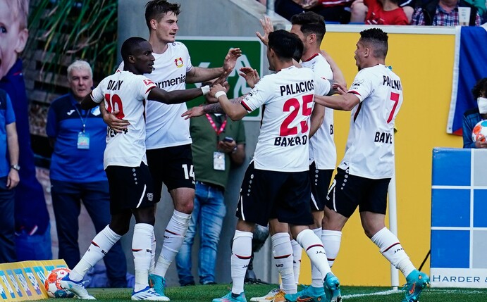 Dabei brachten Georginio Rutter (22.) und Christoph Baumgartner (36.) die Gastgeber zweimal in Führung. Moussa Diaby sorgte für den 2:2-Zwischenstand (73.), Lucas Alario traf noch zum 4:2 (90.+1). Mit dem 78. Saisontor stellten die Leverkusener einen Vereinsrekord auf: Die bisherige Bestmarke stand bei 77 Treffer in der Saison 2001/2002.