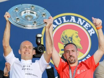 «Für immer ein Bayer», rief Robben «dankbar und glücklich» den Fans zu. Vollgepumpt mit Adrenalin war der Holländer, als er nach Ribéry eingewechselt wurde und prompt Tor Nummer 99 erzielte. «Ich bin gelaufen, ich habe gegrätscht, ich habe alles gemacht wie ein kleines Kind», sagte der Ausnahme-Profi. «Und nächste Woche setzen wir noch einen drauf», versprach der Holländer mit Blick auf das Pokalfinale in Berlin gegen den Herausforderer RB Leipzig.