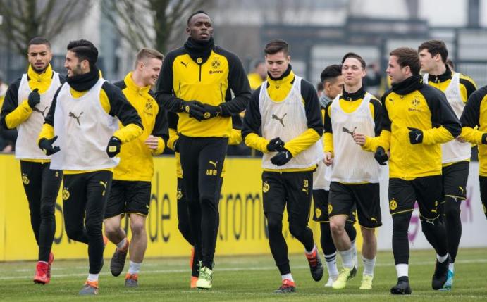 Der achtmalige Sprint-Olympiasieger Usain Bolt hat am Donnerstag zum zweiten Mal mit den Fußballprofis von Borussia Dortmund trainiert. Der Superstar aus Jamaika nahm am Vormittag an der Übungseinheit von Trainer Peter Stöger teil.