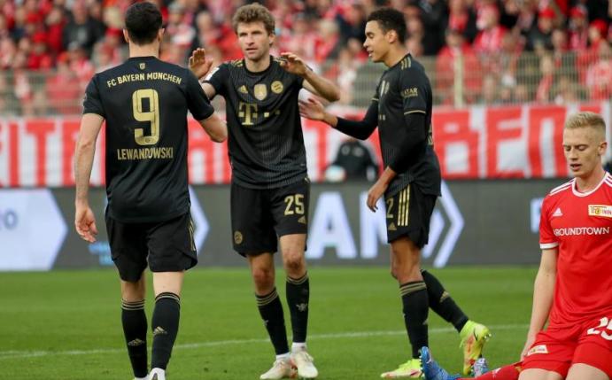 Wiedergutmachung : Der zweite Fünfer-Pack innerhalb weniger Tage schmeckte dem FC Bayern deutlich besser. Nach der 0:5-Schmach in Gladbach - der höchsten Pokal-Pleite der Vereinsgeschichte - gab es bei Union Berlin ein 5:2. Alles wieder gut? Nicht ganz, wie Thomas Müller festhält: «Wir haben hier gewonnen, überzeugend gespielt. Aus dem Pokal sind wir trotzdem raus. Damit müssen wir schon weiter umgehen.» Immerhin bleibt der FC Bayern Spitzenreiter und hat auch noch einen Torrekord aufgestellt. 38 Treffer nach zehn Spieltagen hat es in der Bundesliga noch nie gegeben.