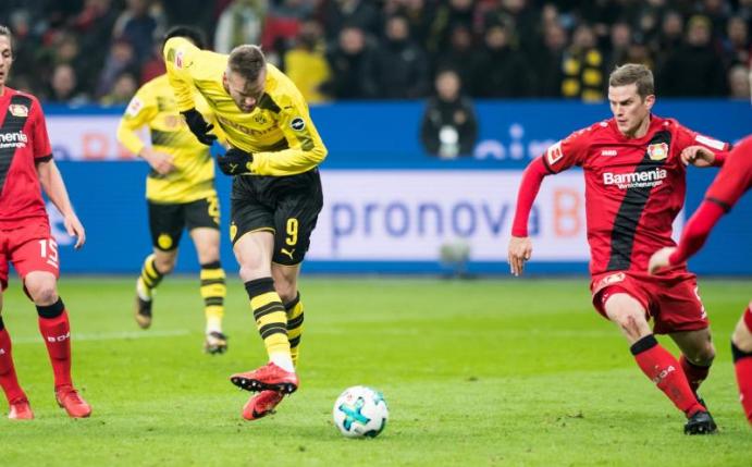 In Leverkusen dominierte die Werkself die Partie im ersten Durchgang. Bayer 04 erspielte sich Torchancen und ging nach einer halben Stunde durch Kevin Volland verdient in Führung. Kurz vor der Pause sah Wendell nach einem harten Foul an Gonzalo Castro die Rote Karte. Mit einem Mann mehr drängte der BVB eine Woche nach dem spektakulären 4:4 im Derby gegen Schalke 04 auf den Ausgleich und kam durch Andrej Jarmolenko immerhin zum 1:1 (73.).