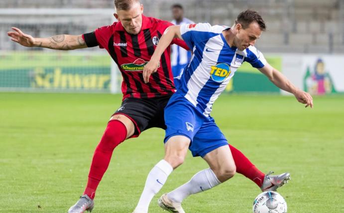 Nach dieser Szene übernahmen die ersatzgeschwächten Berliner, bei denen der gesperrte Dedryck Boyata, Santiago Ascacibar, Javairo Dilrosun, Maximilian Mittelstädt, Mathew Leckie, Per Skjelbred, Karim Rekik und Marius Wolf fehlten, erst einmal das Kommando. Die Freiburger agierten in dieser Phase zu passiv.