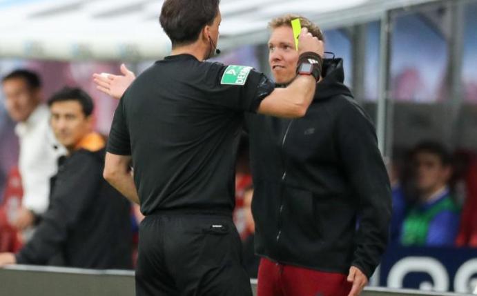(Leipzigs Coach Julian Nagelsmann nach dem 2:0-Sieg am 31. Spieltag über eine wiedererstarkte TSG 1899 Hoffenheim, die er von 2016 bis 2019 trainierte)