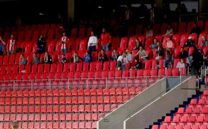 Mitte der zweiten Halbzeit standen und saßen plötzlich etwa 50 Zuschauer auf der Haupttribüne. Wie sie ins Stadion kamen, war zunächst unklar. Nach den coronabedingten Hygiene- und Sicherheitsvorschriften sind derzeit keine Fans in den Stadien zugelassen. Nach wenigen Minuten wurden die Zuschauer von Ordnern wieder aus der Arena geleitet.
