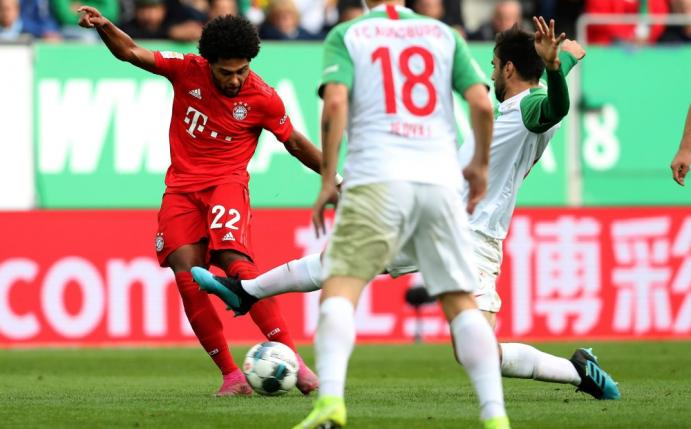 Für die Bayern begann die Begegnung vor 30.660 Zuschauern in der ausverkauften WWK-Arena mit einem doppelten Schock. Nach Zusammenspiel mit Rani Khedira traf Richter volley gegen die unsortierte Münchner Abwehr. Dann verletzte sich Süle beim Duell mit Florian Niederlechner (9.), den keine Schuld traf. Der Nationalspieler hielt sich mit schmerzverzerrtem Gesicht das Knie, in dem er sich 2014 das Kreuzband gerissen hatte. Für ihn kam David Alaba (12.), Lucas Hernandez rückte von links ins Abwehrzentrum.