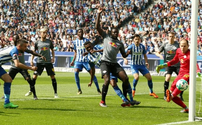 Dayot Upamecano (2.), Ademola Lookman (8.), Jean-Kevin Augustin (22. und 54.), Nationalstürmer Timo Werner (49.) und Bruma (82.) machten mit ihren Treffern die Rückkehr der Leipziger auf die internationale Bühne perfekt. Für Berlin waren Torjäger Vedad Ibisevic (4.) in seinem 100. Spiel im Hertha-Trikot und Salomon Kalou (64.) erfolgreich. RB-Trainer Ralph Hasenhüttl geht damit gestärkt in die für Montag geplanten Gespräche mit den Klubbossen über seine Zukunft.