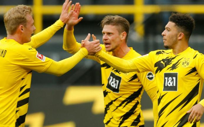Fünf Tage vor dem Pokalendspiel am Donnerstag (20.45 Uhr/ARD und Sky) im Berliner Olympiastadion erzielten Kapitän Marco Reus (7.) und Jadon Sancho (51., 87.) die Treffer der Gastgeber. Der BVB blieb damit auch im siebten Spiel in Folge gegen Leipzig ungeschlagen und verschaffte sich einen psychologischen Vorteil für den Pokal-Showdown. Daran änderten auch die RB-Tore von Nationalspieler Lukas Klostermann (63.) und Dani Olmo (77.) nichts.