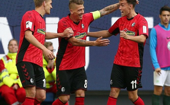 Der Franzose Jerome Roussillon (11.), der Niederländer Wout Weghorst per Foulelfmeter (63.) und der Schweizer Renato Steffen (74.) trafen für die Wolfsburger, die unter der Woche im DFB-Pokal bei RB Leipzig (0:1) ausgeschieden waren. Der Italiener Vincenzo Grifo (37.), Kapitän Nils Petersen (70.) und Luca Waldschmidt (88.) waren für Freiburg erfolgreich.