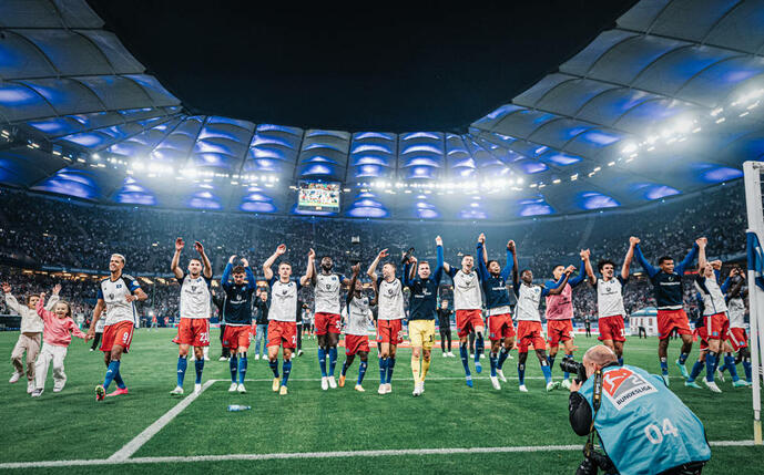 Die Zuschauer blieben noch minutenlang auf den Rängen, genossen den Schlussjubel mit ihrem Team und die einmalige Atmosphäre im Volkspark. „Mir fehlen fast die Worte, was hier abgegangen ist“, jubelte Sky-Experte und Zweitliga-Idol Torsten „Tusche“ Mattuschka im Stadion-Talk, „Spektakel pur, acht Tore, danke für diesen Fußballabend, danke Schalke, danke HSV – und ein verdienter Sieger HSV.“