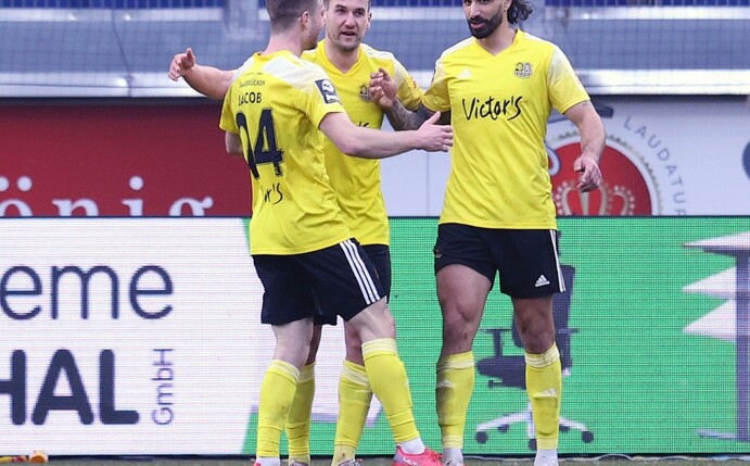 Einen Punkt hinter Saarbrücken liegt auch Wiesbaden nach seinem fünften Spiel in Serie ohne Niederlage (elf Punkte) aussichtsreich im Rennen.