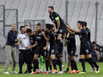 Marseille (dpa) - Die Delegation um Fredi Bobic und seine Vorstandskollegen kannte nach dem späten wie sensationellen 2:1-Sieg der Hessen kein Halten mehr.
