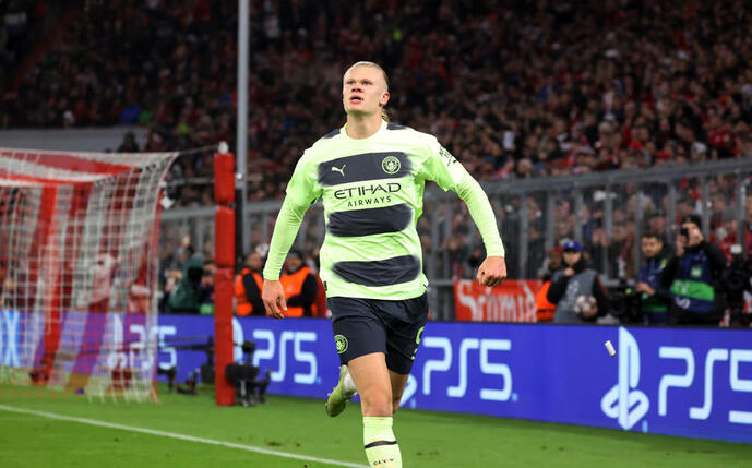 47 Tore in 41 Pflichtspielen hatte Erling Braut Haaland für City bereits markiert, aber Treffer Nummer 48 ließ er in München per verschossenen Handelfmeter von Dayot Upamecano nach 37 Minuten liegen. Der City-Sturmbulle jagte den Ball über das Tor von Bayerns Keeper Yann Sommer.