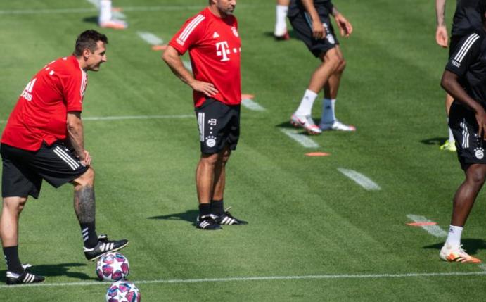 Nach einem freien Sonntag und einer Trainingseinheit via Video-Schalte am Montag ließ Trainer Hansi Flick den Doublesieger wieder auf dem Platz schwitzen. Die Gruppe der nicht für die Königsklasse spielberechtigten Akteure trainierte der neue Assistent Miroslav Klose.