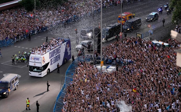 Die Mannschaft um den früheren Fußball-Weltmeister Toni Kroos traf am Sonntagabend beim berühmten Cibeles-Brunnen ein, wo sie von ungewöhnlich großen Menschenmassen erwartet wurden. Sportjournalisten im staatlichen TV-Sender RTVE betonten, sie hätten kaum je so viele begeisterte Fans nach einem Sieg in der Champions League gesehen.