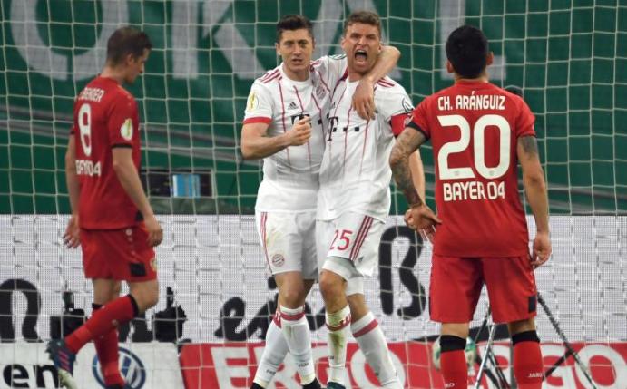 Nach dem Anschlusstor von Lars Bender (16.) hatte Leverkusen noch auf die erste Finalteilnahme seit 2009 hoffen können, doch in der zweiten Halbzeit demontierte der FC Bayern den Kontrahenten. Leon Baileys Freistoßtor (72.) änderte letztlich nichts an der höchsten Niederlage von Bayer in der Pokalgeschichte. Der Münchner Finalgegner wird am Mittwoch zwischen dem FC Schalke 04 und Eintracht Frankfurt ermittelt. Mit einem Sieg in Berlin könnten die Münchner ihr zwölftes Double perfekt machen.