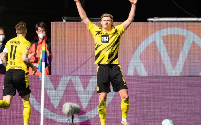 Haaland hatte sich am 24. April beim 2:0 der Borussia in Wolfsburg eine Prellung im Oberschenkel zugezogen und deshalb im DFB-Pokal-Halbfinale gegen Holstein Kiel (5:0) und im Bundesliga-Spiel gegen Leipzig (3:2) gefehlt.