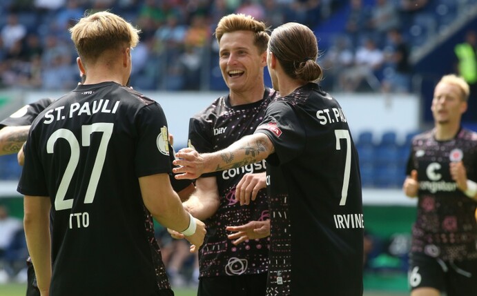 Nach dem Wechsel brachte Otto St. Pauli zwar auf die Siegerstraße, nach einer Roten Karte gegen Manolis Saliakas (77., grobes Foulspiel) musste der Favorit in der Schlussphase aber noch einmal zittern. Vicario gelang mit einem raffinierten Freistoß der Ausgleich, ehe der Ball vom Rücken von Medic zum Sieg von St. Pauli ins Tor sprang.
