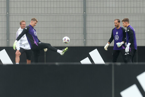 Für die abschließenden WM-Qualifikationsspiele nominierte Julian Nagelsmann erstmals seit dem vorläufigen EM-Kader wieder vier Torhüter. Auf der Pressekonferenz am Montag erklärte der Bundestrainer, warum diesmal mehr Keeper dabei sind und warum dies keinen Einfluss auf die Anzahl der Feldspieler hat.