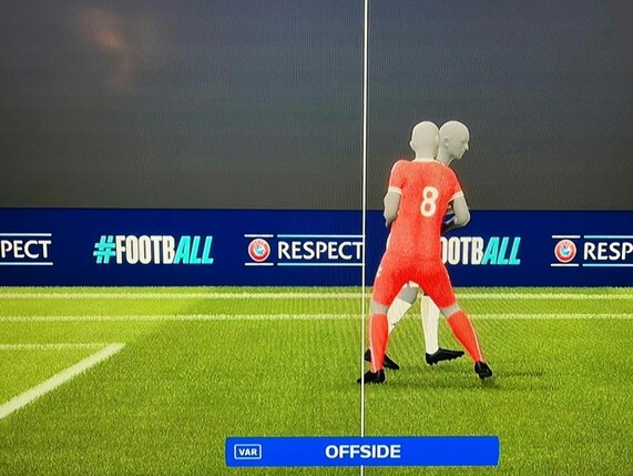 Das war knapp! Es fehlten nur Zentimeter, und Dänemark wäre im EM-Achtelfinale von Dortmund gegen die deutsche Fußball-Nationalmannschaft in Führung gegangen. Doch der frühere Dortmunder Thomas Delaney stand beim Tor von Joachim Andersen (48.) hauchzart im Abseits, wie das offizielle UEFA-Bild aufzeigt.