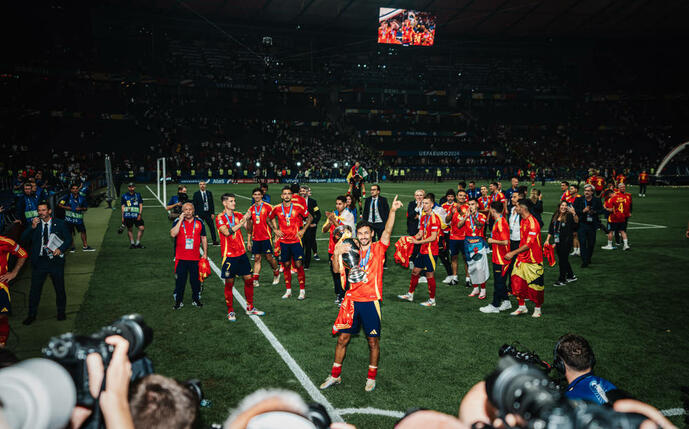 - Mit dem 2:1 gegen England übertrumpfte Spanien, das 3 seiner 4 EM-Titel seit 2008, also in den letzten 16 Jahren geholt hatte, Deutschland als Co-Rekord-Europameister.