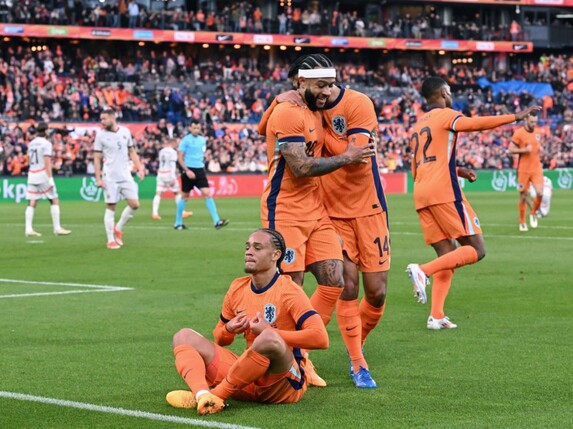 Der Leipziger Xavi Simons (23.) mit seinem ersten Länderspiel-Treffer im 14. Einsatz, Liverpools Abwehrstar Virgil van Dijk (49.), der Dortmunder Donyell Malen (79.) und Hoffenheims Wout Weghorst (90.+4) trafen für den Europameister von 1988, der noch einige Chancen liegen ließ.