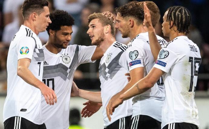 Beim lockeren 8:0 (5:0) in der EM-Qualifikation in Mainz gegen Estland beeindruckte das DFB-Team um die Doppeltorschützen Marco Reus und Serge Gnabry mit viel Tempo, Direktspiel und spielerischen Raffinessen. Neben dem Dortmunder Reus (10. und 37. Minute) und dem Münchner Gnabry (17. und 63.) sorgten Leon Goretzka (20.), Ilkay Gündogan (26./Foulelfmeter), Timo Werner (79.) und Leroy Sané (88.) für den deutlichen Erfolg der Gastgeber.