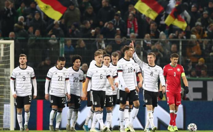 Die Mannschaft um den ins Team zurückgekehrten Anführer Toni Kroos setzte zwar die Löw'sche Vorgabe nach einem «druckvollen Spiel» und «Dynamik» um. Es fehlte aber oftmals der letzte Pass. Mehr als 80 Prozent Ballbesitz und 12:0 Torschüsse standen bereits nach einer halben Stunde zu Buche. Das Tor wollte aber nicht fallen. Ein Schuss von Ginter parierte Torhüter Aliaksander Gutor (15.), dazu trafen Kroos (20.) und Serge Gnabry (24.) das Außennetz.