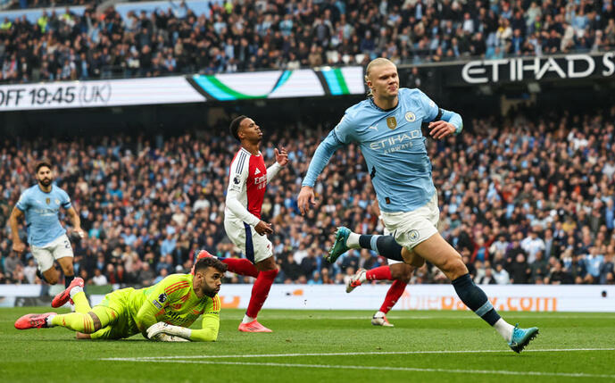 Manchester City gegen den FC Arsenal im Spitzenspiel der englischen Premier League am Sonntag 2:2 (1:2) und Tor-Maschine Erling Braut Haaland (24) erreichte dabei den nächsten Meilenstein. Der Ex-Stürmer von RB Salzburg und vom BVB markierte sein 100. Tor Wettbewerb übergreifend für die „Sky Blues“: