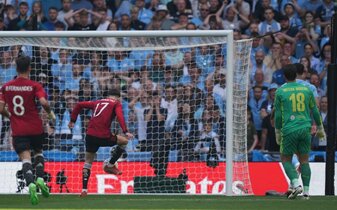 Dass United dieser Überraschungscoup gelang, lag auch an einem Patzer von Manchester Citys deutschem Torhüter Stefan Ortega Moreno, der vor dem 0:1 (30.) vom eigenen Mitspieler, dem Ex-Leipziger Josko Gvardiol, überlistet wurde. Alejandro Garnacho nutzte den Fehler – und traf für United.