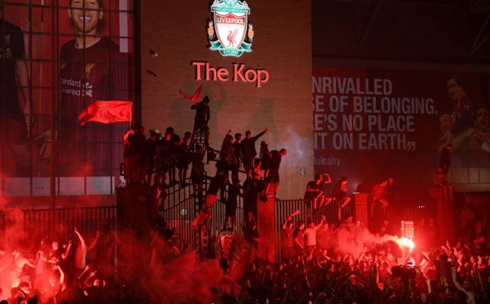 Die Fans, viele von ihnen mit Masken, versammelten sich an der legendären Liverpool-Heimstätte Anfield Road. Sie sangen, hielten nachgemachte Meistertrophäen in die Luft, zündeten Leuchtfeuer und färbten so den Himmel rot. Damit ignorierten sie Klopp, der gesagt hatte: "Ich hoffe, dass ihr zu Hause bleibt. Geht vor euer Haus und feiert, wenn ihr wollt, aber mehr nicht."