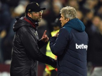 Teammanager Jürgen Klopp vom Premier-League-Spitzenreiter FC Liverpool hat sich nach dem 1:1 (1:1) in der englischen Fußball-Meisterschaft bei West Ham United Sticheleien seines Widersachers Manuel Pellegrini gefallen lassen müssen. "Klopp ist gewohnt, durch Abseitstore zu gewinnen", sagte der chilenische Hammers-Coach über Liverpools 1:0-Führung nach einer klaren Abseitsposition und erinnerte mit seinem Seitenhieb an Klopps 3:2-Erfolg mit Borussia Dortmund im Champions-League-Viertelfinale 2013 gegen den FC Malaga mit Pellegrini auf der Bank.