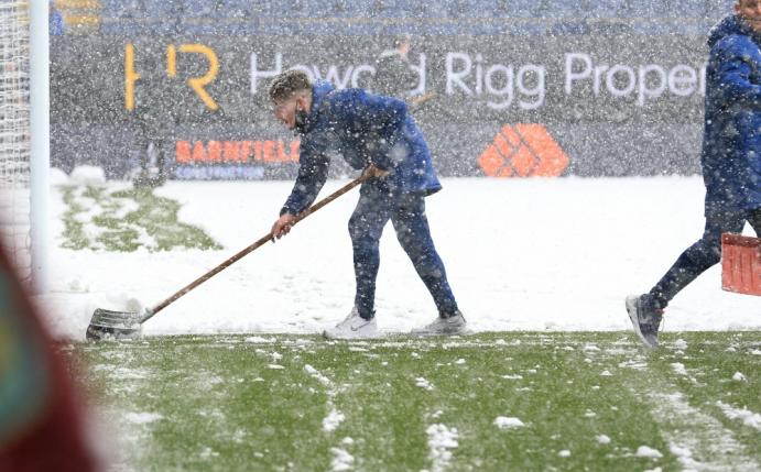 Die Helfer im Nordwesten Englands schafften es nicht, den Rasen rechtzeitig und ausreichend vom Schnee zu befreien.
