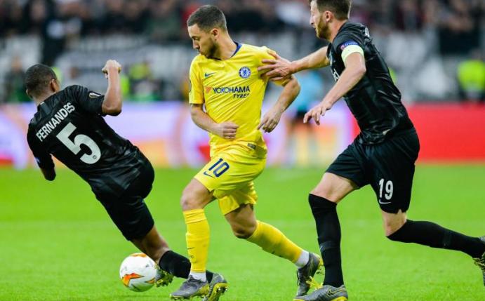 Das Team von Trainer Adi Hütter verspielte im Halbfinal-Hinspiel gegen den großen Favoriten FC Chelsea zwar seine Führung, hat nach dem 1:1 (1:1) im Duell mit dem früheren Champions-League-Sieger aber noch alle Chancen auf das Endspiel in Baku. Im ersten Europapokal-Halbfinale der Eintracht seit 39 Jahren brachte Luka Jovic (23. Minute) die Hessen in Führung, bevor dem Spanier Pedro vor 48.000 Zuschauern in der ausverkauften Frankfurter Arena kurz vor der Halbzeit (45.) der Ausgleich gelang. Im zweiten Durchgang drückte Chelsea auf weitere Tore, doch die Eintracht verteidigte mit Glück und Geschick das Remis.