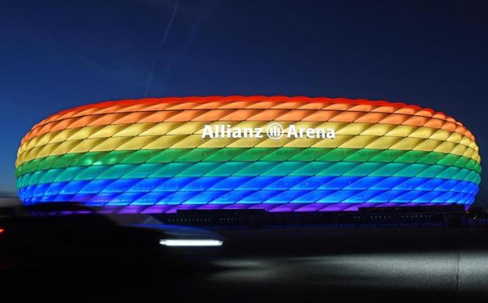 Die Beleuchtung des Stadions in Regenbogenfarben war vor dem letzten deutschen EM-Gruppenspiel gegen Ungarn zum Streitthema geworden, weil die Europäische Fußball-Union einen entsprechenden Antrag der Stadt abgelehnt hatte. Der Dachverband hatte dies damit begründet, dass der Antrag mit Blick auf das Ungarn-Spiel politisch motiviert gewesen sei, und der Stadt den 28. Juni sowie den Zeitraum vom 3. und 9. Juli als Alternativtermine vorgeschlagen. Dieser Vorschlag fand aber keine Umsetzung, die Stadt München und der Deutsche Fußball-Bund hatten eine Prüfung angekündigt.
