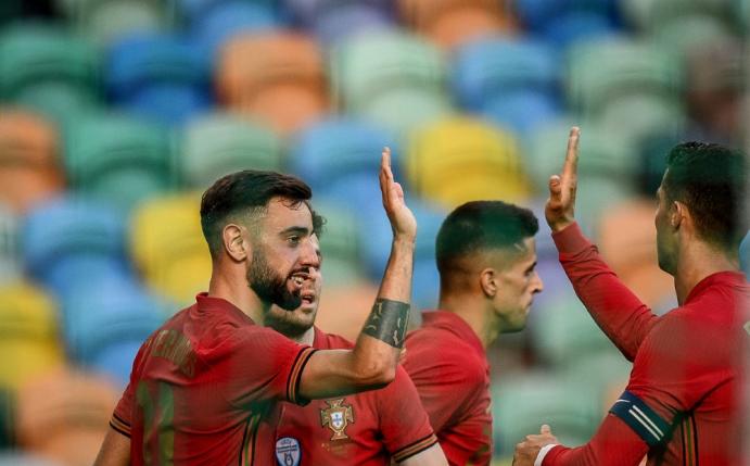 Bruno Fernandes (42., 90.+1) von Manchester United, Juventus-Star Ronaldo (44.) und Joao Cancelo vom englischen Meister Manchester City (86.) erzielten die Tore in Lissabon. Der Frankfurter Torjäger Andre Silva wurde zur zweiten Halbzeit eingewechselt.