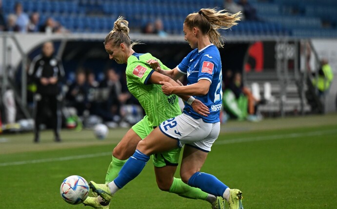 Die Fußballerinnen des VfL Wolfsburg haben am zweiten Bundesliga-Spieltag einen späten Sieg gefeiert. Der deutsche Meister kam vor 7109 Zuschauern in Sinsheim zu einem 2:1 (0:1) bei der TSG 1899 Hoffenheim.