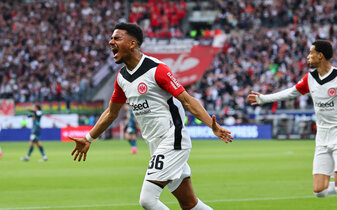 Die Blockade löste aber Eintracht Frankfurt – und zwar in der 21. Minute mit dem 1:0 durch Ansgar Knauff (23) – und nach schnellem Ballgewinn über die linke Seite von Hugo Ekitiké. Über links liefen fast alle gefährlichen Angriffe des Tabellendritten.