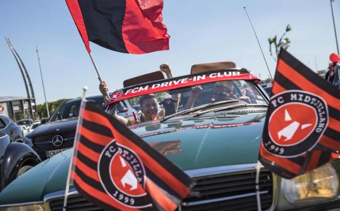Die Zuschauer verfolgten die Partie vor dem Stadion aus ihren Autos heraus auf großen Leinwänden, wie der Tabellenführer der dänischen Fußball-Superliga nach der 0:1-Niederlage gegen AC Horsens mitteilte. Bis zu fünf Fans pro Auto waren erlaubt, den entsprechenden Kommentar zum Spiel gab es über das Radio in den Autos.
