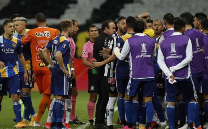 Das zeigen Videos aus dem Innenbereich des Stadions sowie Handyaufnahmen. Die Boca Juniors sollen mit der Leistung der Unparteiischen unzufrieden gewesen sein, nachdem diese zwei Tore in Absprache mit dem Videoschiedsrichter nicht anerkannt hatten. Schon während der Partie war die Stimmung aufgeheizt gewesen, doch nach Abpfiff entluden sich die Emotionen. Zu einem ersten Zusammenstoß kam es zwischen beiden Mannschaften im Spielertunnel. Später sollen Spieler der Boca Juniors versucht haben, die Kabine von Mineiro zu stürmen, da sich dort die Schiedsrichter versteckt hätten. Um die streitenden Gruppen zu trennen, setzte die Polizei Pfefferspray ein.