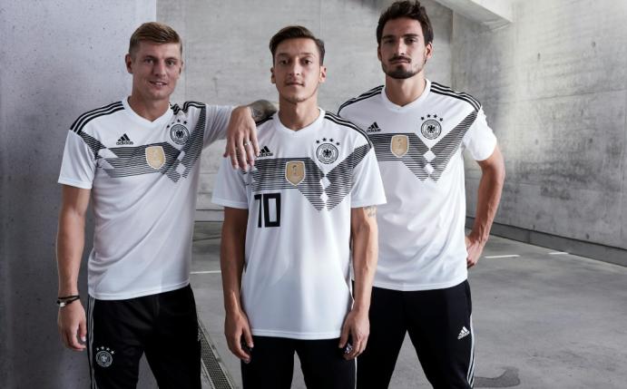 Mit einer Reminiszenz an die legendären Trikots von 1990 will die deutsche Fußball-Nationalmannschaft in Russland zu ihrem fünften WM-Titel stürmen. Die am Montag von adidas präsentierten Trikots sind wie beim Titelgewinn vor 27 Jahren in Italien mit einem gezackten Brustring versehen - allerdings nicht in den Nationalfarben, sondern in drei Grautönen.
