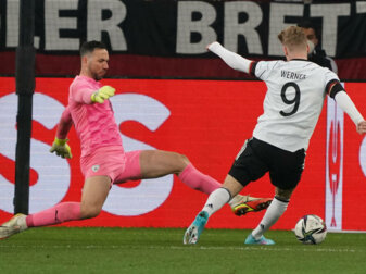 Sekunden später machte er es besser. Nach einer Ecke von David Raum war der 22-Jährige per Kopf zur Stelle und erzielte sein achtes Länderspieltor. Sein Londoner Teamkollege Werner legte nach einem Freistoß Gündogans in der Nachspielzeit des ersten Durchgangs nach, es war sein 22. Tor im DFB-Dress.