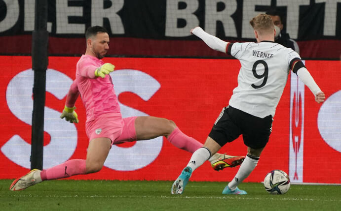 Sekunden später machte er es besser. Nach einer Ecke von David Raum war der 22-Jährige per Kopf zur Stelle und erzielte sein achtes Länderspieltor. Sein Londoner Teamkollege Werner legte nach einem Freistoß Gündogans in der Nachspielzeit des ersten Durchgangs nach, es war sein 22. Tor im DFB-Dress.