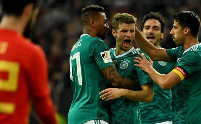 Die etablierten Kräfte um Khedira und Müller waren es, die sich gegen die aufreizende Lässigkeit der Spanier mit Robustheit zur Wehr setzten - und sei es mit einem Foul wie Müller gegen Sergio Ramos. Und die Botschaft - sich nicht veralbern zu lassen - kam an. Müller zirkelte einen Ball unhaltbar für David de Gea ins Tor. Für den Münchner war es in seinem 90. Länderspiel der erste DFB-Treffer seit fast genau einem Jahr. Die Weltmeister konnten froh sein, dass sie wieder ins Spiel gefunden hatten.
