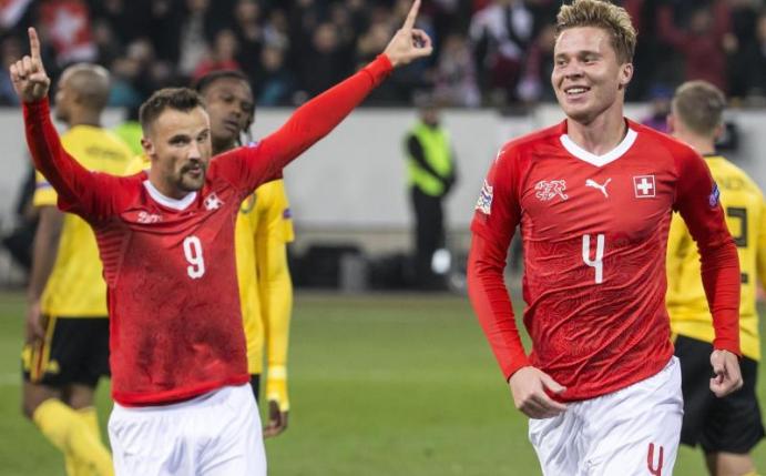 Der Mönchengladbacher Thorgan Hazard hatte mit zwei Toren in der 2. und 17. Minute zwar einen frühen Vorsprung für Belgien heraus geschossen, doch die Schweizer ließen sich davon nicht aus dem Konzept bringen. In Luzern kamen die Gastgeber zunächst durch den Ex-Wolfsburger Ricardo Rodríguez zum Anschluss (26./Foulelfmeter), bevor der frühere Frankfurter Haris Seferovic die Partie noch vor dem Seitenwechsel mit zwei Toren drehte (31./44.). Nach der Pause erzielte der Nico Elvedi den vierten Schweizer Treffer (62.), ehe der überragende Seferovic sechs Minuten vor dem Ende per Kopf den Schlusspunkt setzte.