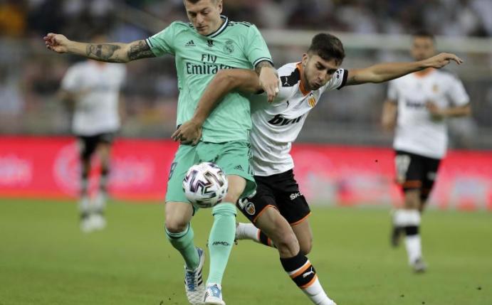 Der 30-Jährige brachte die Königlichen im saudi-arabischen Dschidda beim 3:1 (2:0)-Sieg gegen den FC Valencia in der 16. Minute in Führung. Bei Kroos' sehenswertem Kunststoß machte Valencias Keeper Jaume Domenech aber eine denkbar schlechte Figur.