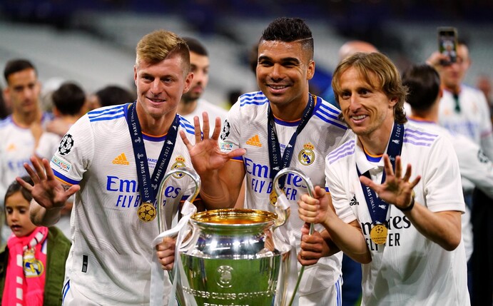 Während es für die von 15.000 Fans begleiteten Hessen um den nächsten emotionalen Coup in Europa geht, haben Kroos und Co. längst den Ruf von Titelmaschinen. Starten der deutsche Ex-Weltmeister, Kroatiens Luka Modric und der Brasilianer Casemiro zusammen in ein Endspiel, wurde dieses in allen acht Fällen gewonnen. Trainer Carlo Ancelotti taufte das seit bald einem Jahrzehnt dominierende Trio im Mittelfeldzentrum jüngst «das Bermuda-Dreieck» - und wird im Olympiastadion in Finnland wohl mal wieder alle drei aufstellen.