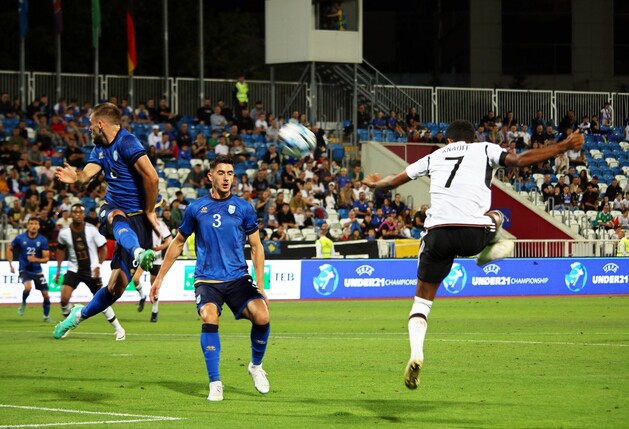 Das Sturm-Talent von Borussia Dortmund führte die Auswahl von Antonio Di Salvo beim 3:0 (0:0) im Kosovo mit zwei Treffern (74./78. Minute) zum Sieg. Das dritte Tor erzielte der Kieler Colin Kleine-Beckel (89.). Die Mannschaft des Deutschen Fußball-Bunds dominierte die Partie gegen defensive Gastgeber komplett, vergab zunächst aber beste Chancen auf die überfällige Führung.