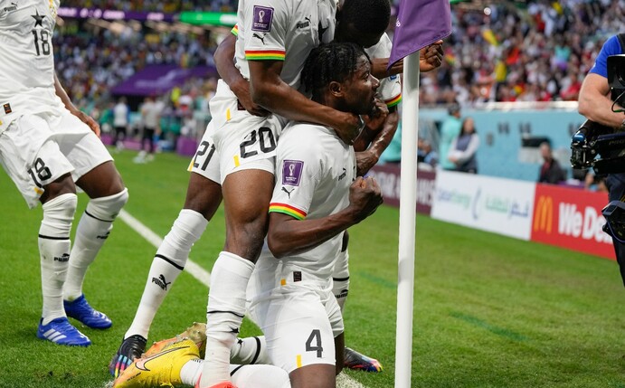 Ghana gelang quasi mit der ersten Torchance gleich der Führungstreffer. Nach einem Freistoß von Jordan Ayew herrschte Verwirrung im koreanischen Strafraum, die Salisu mit einem Drehschuss ausnutzte. Auch zehn Minuten später war der zweimalige Asienmeister bei einem hohen Ball nicht auf der Höhe. Wieder leitete Ayew, dessen Bruder André Kapitän ist und ebenfalls in der Startelf stand, die Aktion ein. Kudus brauchte nur noch einköpfen. Die beiden Ayew-Brüder sind die Söhne vom früheren Olympique-Marseille-Star Abédi Pelé, der dreimal zu Afrikas Fußballer des Jahres gekürt wurde.