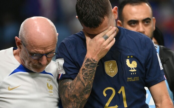 Lucas Hernandez humpelte von zwei Sanitätern gestützt in die Kabine. Frankreichs Mannschaft ist von Verletzungen geplagt: So muss sie unter anderem auf Weltfußballer Karim Benzema und den Leipziger Stürmer Christopher Nkunku verzichten, die beiden hatten in der Vorbereitung Verletzungen erlitten.